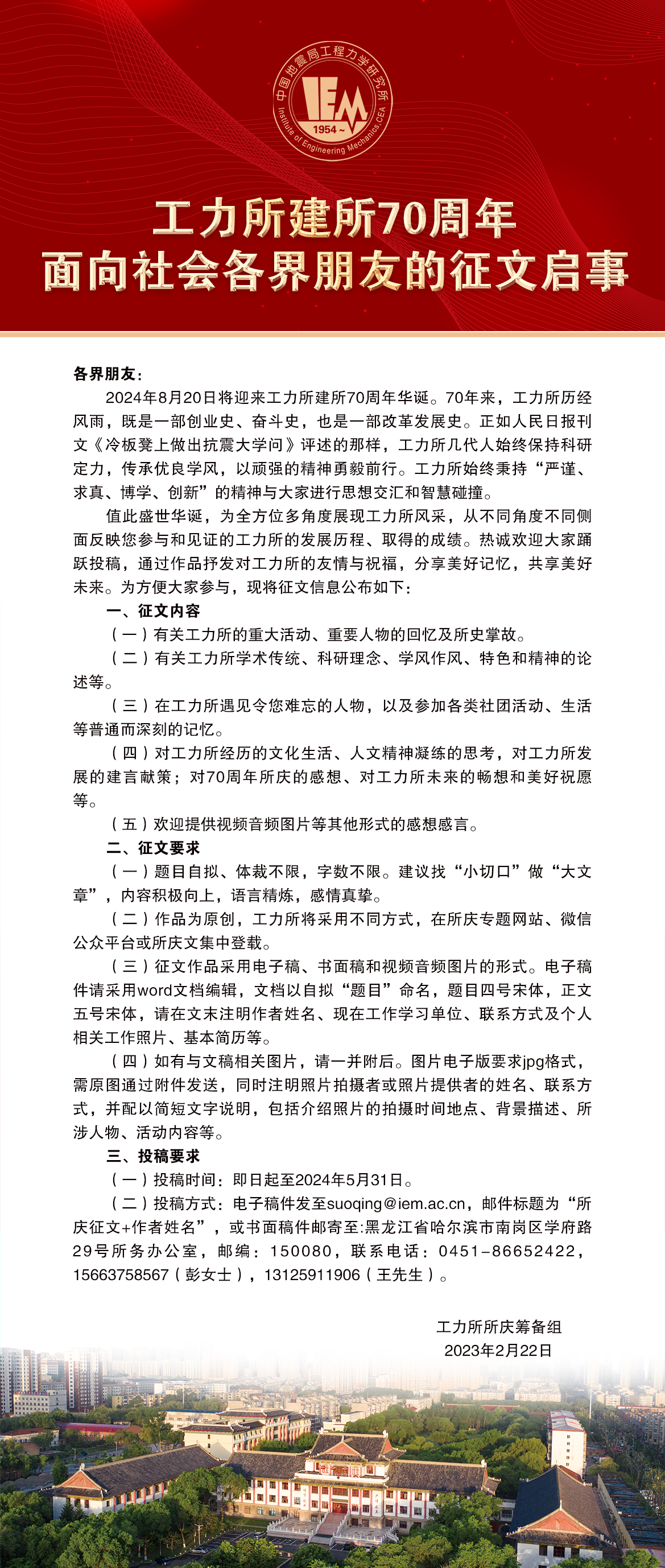 工力所建所70周年面向社會(huì)各界朋友的征文啟事