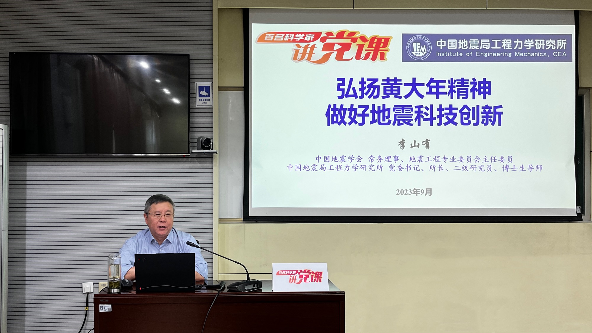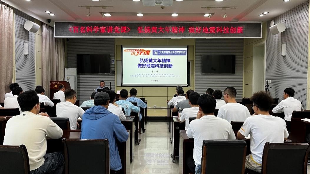 發(fā)布時間: 2023-09-15 點擊數(shù)量:14645為有效發(fā)揮中國科協(xié)黨校全國學會分校政治引領“主陣地”、黨性錘煉“大熔爐”作用,中國科協(xié)科技社團黨委組織開展了“百名科學家講黨課”活動。受中國地震學會邀請,9月14日,中國地震學會常務理事、地震工程專業(yè)委員會主任委員,我所黨委書記、所長李山有同志以《弘揚黃大年精神 做好地震科技創(chuàng)新》為題為所辦計財黨支部、工程地震研究中心黨支部及碩士研究生第二黨支部講授專題黨課。
