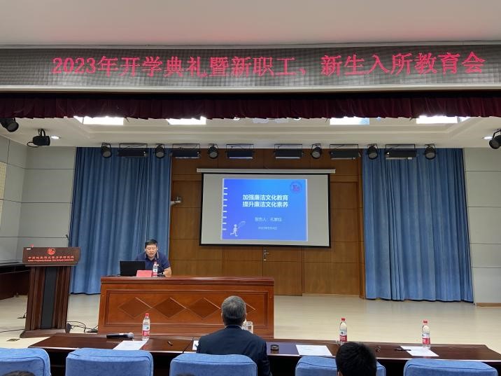 發布時間: 2023-09-05 點擊數量:151659月4日下午,我所舉行2023年新生開學典禮暨新職工、新生入所教育會,隆重歡迎150名新生入學和全體新同事入職。黨委書記、所長李山有,黨委副書記張孟平,紀委書記孔繁鈺,副所長張令心出席開學典禮,張令心主持典禮。