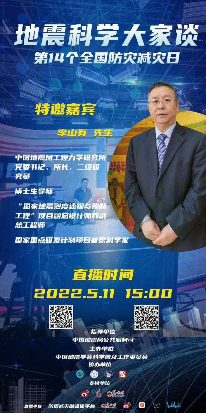 在線訪談。5月11日,我所黨委書記、所長(zhǎng)李山有研究員和副所長(zhǎng)張令心研究員受邀參加由中國(guó)地震學(xué)會(huì)科學(xué)普及工作委員會(huì)主辦的“地震科學(xué)大家談”特別活動(dòng)。
