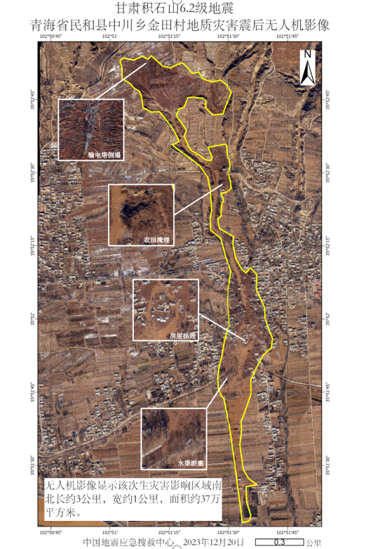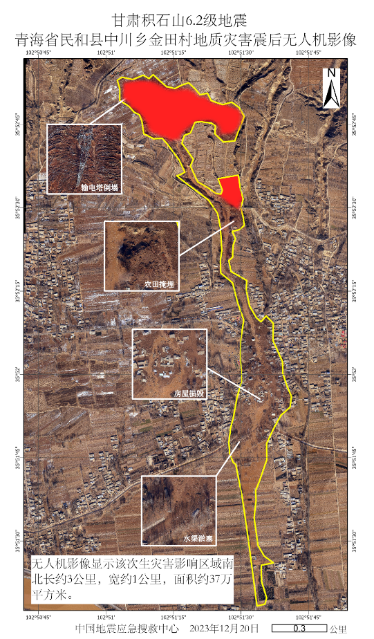 發(fā)布時間: 2023-12-25 點擊數(shù)量:99042023年12月18日23時59分,甘肅省臨夏積石山縣發(fā)生6.2級地震。此次地震已造成部分房屋損毀甚至倒塌,并由此造成人員傷亡。除房屋倒塌外,此次地震在青海省海東市民和縣中川鄉(xiāng)金田村和草灘村引發(fā)了被稱之為“砂涌”的特殊現(xiàn)象,區(qū)域內(nèi)部分房屋被厚達數(shù)米的流滑土壤掩埋(圖1)。