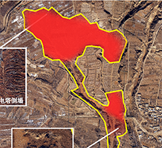 12月22日,在所領導的指示下,我所袁曉銘團隊成立了專門的液化調(diào)查組,組長為陳龍偉研究員,組員聶桂波研究員、王永志研究員、汪云龍副研究員、李兆焱副研究員和張昊宇副研究員。于12月23日早奔赴地震現(xiàn)場,重點考察中川鄉(xiāng)的震害問題。12月24日,調(diào)查組經(jīng)過一天的艱苦調(diào)查,在此次地震流滑區(qū)上游發(fā)現(xiàn)了非常顯著液化現(xiàn)象(圖4),大規(guī)模液化分布在上游兩個區(qū)域內(nèi)(圖5)。結合考察組掌握的以往震害經(jīng)驗,判斷流滑區(qū)震害是上游發(fā)生大規(guī)模液化并導致長距離液化流滑所致,得出液化流滑是中川鄉(xiāng)震害誘因的結論,并向中國地震局甘肅積石山6.2級地震科考指揮部報告。