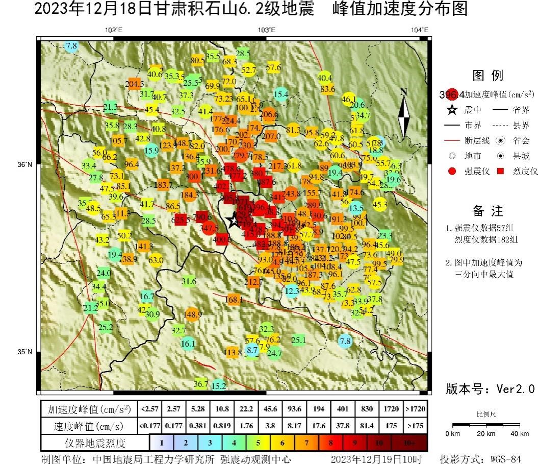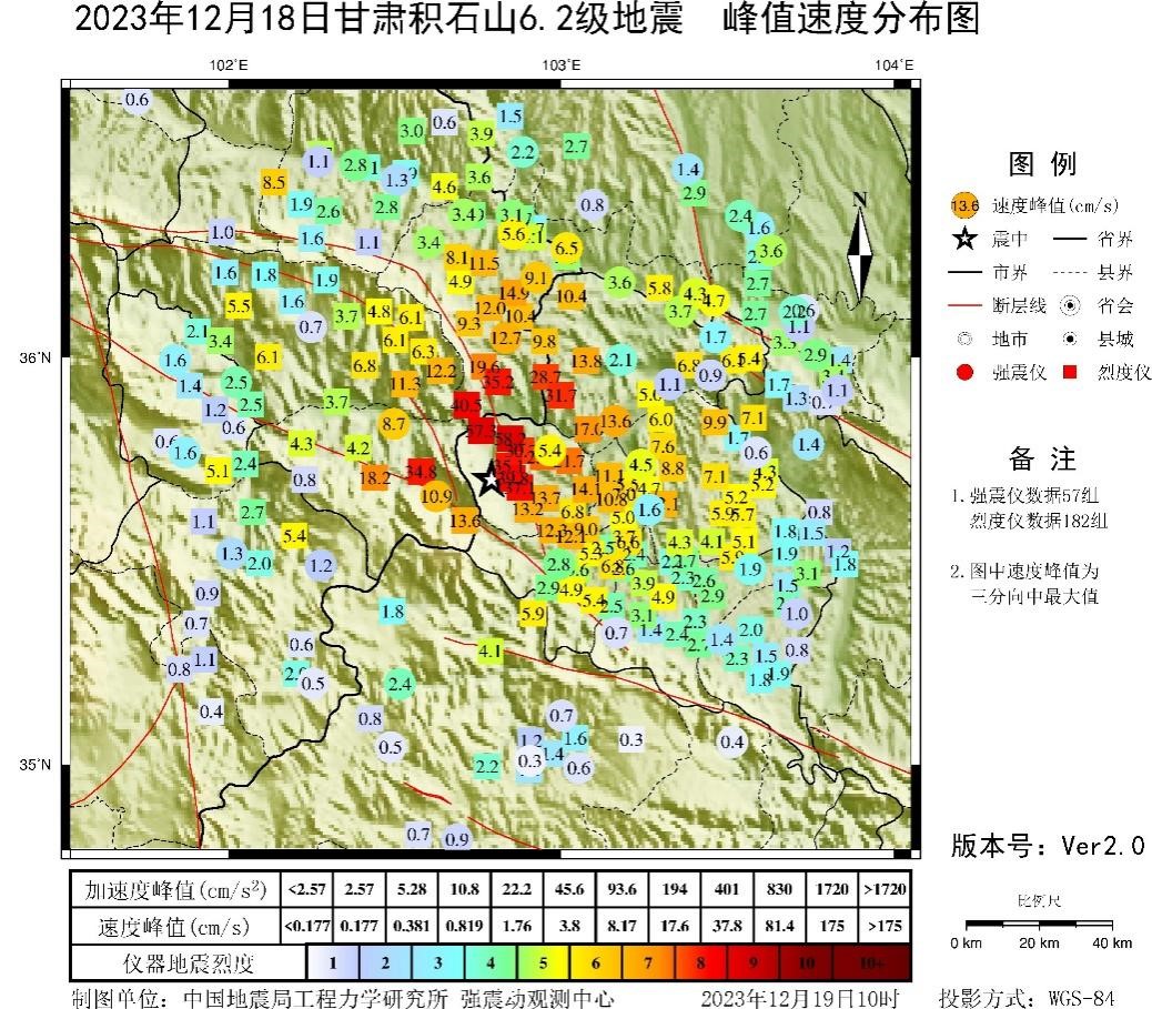 圖1甘肅積石山6.2級地震儀器地震烈度分布圖