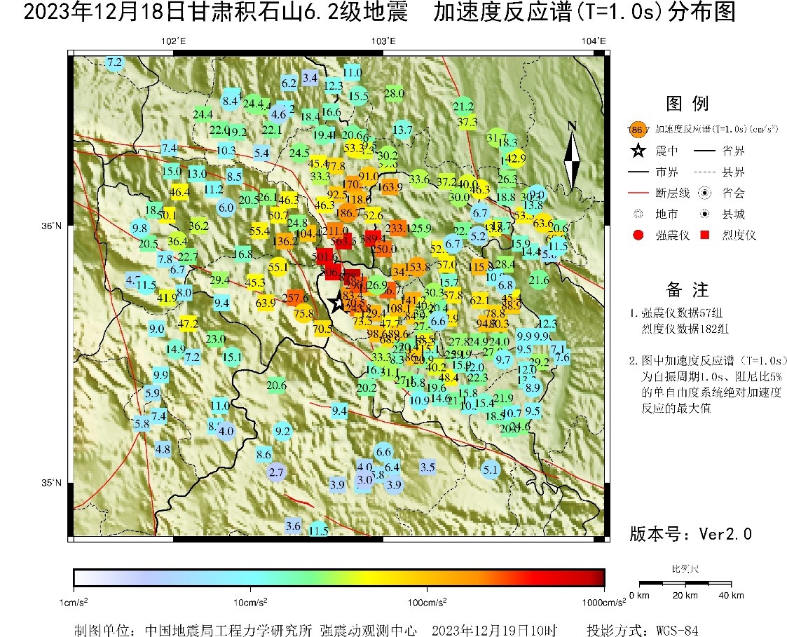 圖5甘肅積石山6.2級地震加速度反應譜(T=1.0s)分布圖