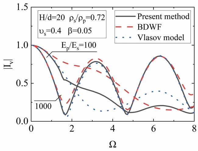 1.本文首先基于Vlasov法推導了一個新的樁-土動力阻抗模型。