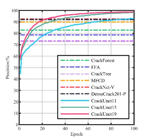 在混凝土結(jié)構(gòu)的服役周期內(nèi),表面裂縫是一種評價混凝土結(jié)構(gòu)健康狀態(tài)的重要指標。但是無論是在實驗室中還是在實際工程中,識別裂縫都是一項非常復(fù)雜的任務(wù)。而人工識別裂縫存在著各種缺陷,包括耗費時間長、評估主觀等。隨著計算機視覺技術(shù)的發(fā)展,使用計算機視覺技術(shù)自動話地識別混凝土裂縫成為當下研究的熱點。但是計算機視覺識別裂縫依然存在一些問題,包括無法實現(xiàn)像素級的檢測,檢測精度不高等問題。