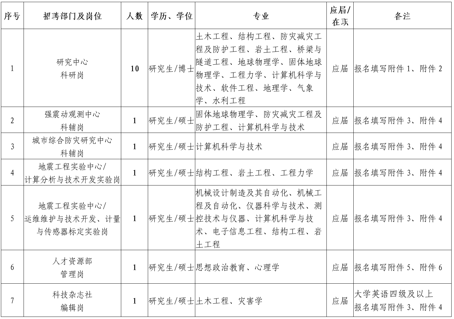 (2)熱愛防震減災(zāi)科研事業(yè),能全職在研究所相關(guān)學(xué)科科研崗位上工作,年齡一般不超過35周歲,科研成果特別突出者,年齡可適當(dāng)放寬。